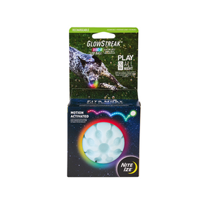 Cette balle en caoutchouc ultra résistante est équipée d’un cœur protégé contenant une LED activée par mouvement. Grâce à ses LED Disc-O changeant de couleur avec un motif ludique, la GlowStreak s’allume dès que vous la faites rebondir, prolongeant le plaisir du lancer du lever au coucher du soleil.