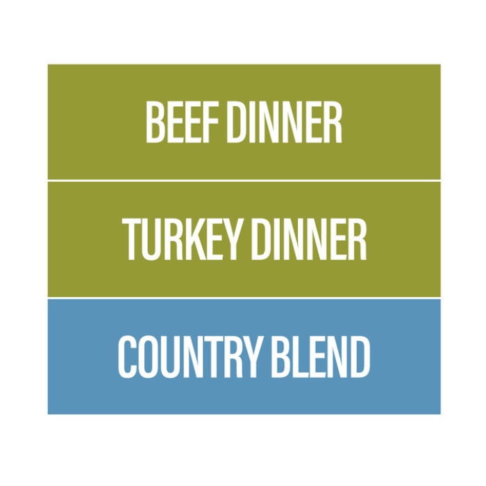 Notre meilleur vendeur ! C'est votre boîte de prédilection pour les chiots ou si votre chien est nouveau dans le cru ! Le Forfait Économique contient ; Dîner au boeuf, dîner à la dinde et mélange campagnard
