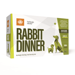 Rabbit Dinner is a low-fat recipe that's a game-changer for dogs with allergies. Tasty and hypoallergenic, rabbit is easy to digest and hard to resist. Seaweed and cod liver oil provide essential omega-3 fatty acids and vitamin D.